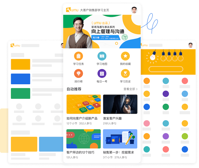 知识库中的课程、小节、学习项目,和企业讲师均可添加至微页面。企业也可添加其他微页面、内外部跳转链接,或添加智能推荐模块,为学员提供更多学习探索机会。