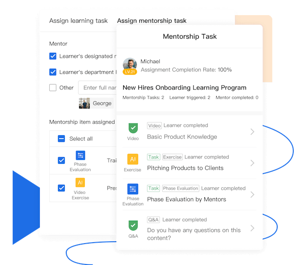 Combined with UMU’s AI coach, mentoring tools like exercises and phase evaluations allow you to keep track of performance and provide feedback in the flow of work, so as to ramp your employees up faster.